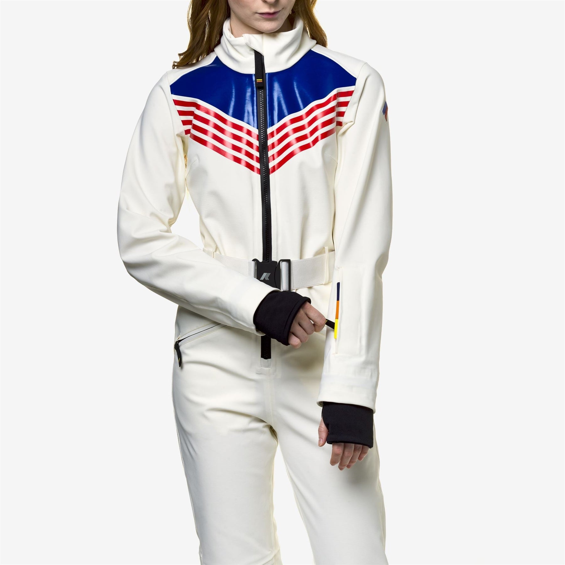 Le style Lechere Suit est la combinaison de montagne conçue pour la ligne Ski K-way et est destinée à un public féminin.